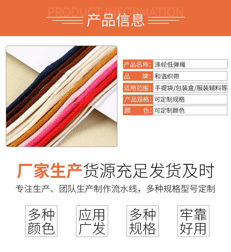 您當前的位置:首頁 / 產品中心 / 滌棉圓繩 SP線繩 / 滌綸低彈繩子